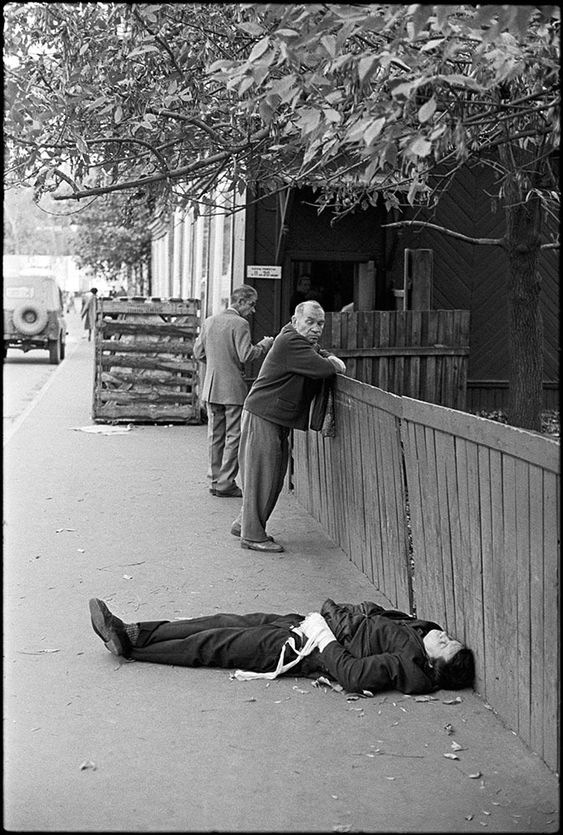 Устал человек после смены, прилег отдохнуть в ожидании автобуса.