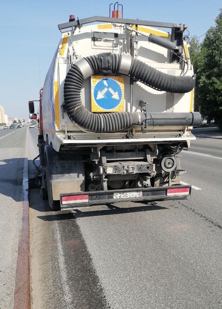 Дорожные службы Тюмени проводят традиционную уборку улиц с акцентом на обеспыливание. Механизированные «дворники» встроенными щётками сметают мусор, тополиный пух и листву с проезжей части и тротуаров. После этого выходит спецтехника, которая увлажняет дорожное полотно. Эта процедура актуальна и проводится в Тюмени при температуре воздуха, превышающей 25 градусов. Цель дорожников — не только очистить дороги и тротуары, но и снизить их температуру.