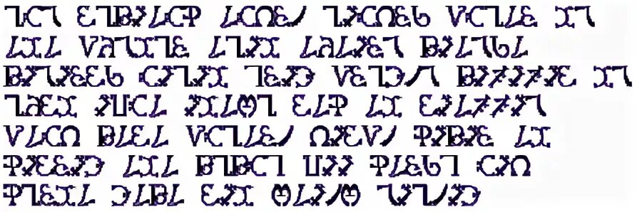 Что же он из себя представляет? Азбука, судя по написанию, нарочито потусторонняя (правда, некоторые улавливают в ней азиатско-кавказские мотивы, но, думаю, это лишь наводит на мысль, откуда пришли на нашу планету азиаты и кавказцы).