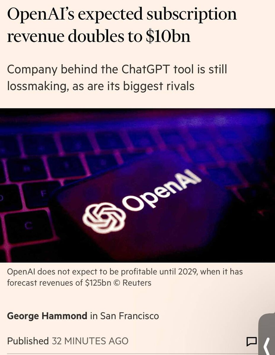 π° OpenAI ΠΏΡΠΎΠ±ΠΈΠ»Π° $10 ΠΌΠΈΠ»Π»ΠΈΠ°ΡΠ΄ΠΎΠ² Π³ΠΎΠ΄ΠΎΠ²ΠΎΠ³ΠΎ Π΄ΠΎΡ