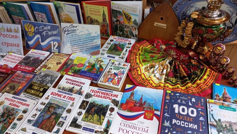 В отделе обслуживания учащихся среднего и старшего школьного возраста ко Дню России оформлена книжная выставка–инсталляция «Моя Россия-моя страна».