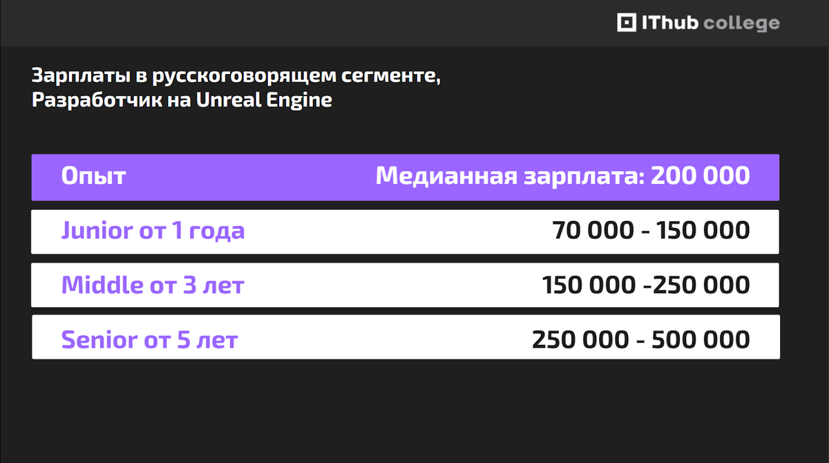Геймдизайн или кодинг? Выбирай и то, и другое! IThub объявляет набор на программу «Разработчик на Unreal Engine», которая прокачает твои технические навыки и раскроет творческий потенциал. Создавай игры и интерактивные приложения с помощью одного из самых популярных движков в игровой индустрии! Unreal Engine — это платформа, на которой создаются многие популярные игры. Fortnite, Atomic Heart, PUBG, Tom Clancy’s Rainbow Six Siege, Hellblade, Dead by Daylight, Dead Cells, Black Myth: Wukong, даже будущий Ведьмак 4 — все они сделаны на этом движке. Unreal Engine используют такие гиганты индустрии, как Ubisoft, Nintendo и др. Платформа позволяет создавать коммерчески успешные игры даже в одиночку. Примеры тому — игры Selfloss, «Белка с пистолетом», Manor Lords, Unrecord и др. Эти проекты, созданные инди-разработчиками, достигли впечатляющих результатов и даже повлияли на развитие игровой индустрии. Но возможности Unreal Engine выходят далеко за рамки игр. Этот движок используется для соз