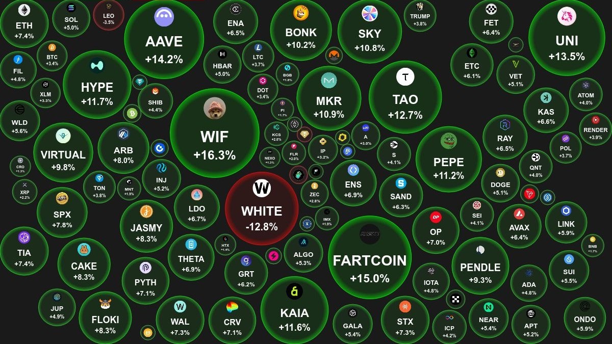 📊 Ежедневный обзор рынка криптовалют от Coinbubbles.ru 🗓 10.06.2025 11:07 по Москве. 🔗 Посмотреть на сайте 📈 Лидеры роста (из ТОП-100): 🟢 dogwifhat (WIF): $1.0320 (+16%) 🟢 Fartcoin (FARTCOIN): $1.2349 (+15.3%) 🟢 Aave (AAVE): $290 (+14.2%) 📉 Лидеры падения (из ТОП-100): 🔴 WhiteRock (WHITE): $0.0012 (-12.8%) 🔴 LEO Token (LEO): $8.8803 (-3.5%) 🔴 Four (FORM): $2.7578 (-0.7%) 🔍 Основные метрики: 🟢 Общая капитализация: $3413.83 млрд (+3.68%) 🟢 Общий объем торгов: $134.37 млрд (+48.50%) 🔴 Доминация Bitcoin: 63.63% (-0.15%) 🟢 Доминация Ethereum: 9.48% (+0.34%) 🟢 Индекс страха и жадности: 71 / 100: ЖАДНОСТЬ (+9) 🟢 Индекс Альтсезона: 31 / 100: НЕ АЛЬТКОИН-СЕЗОН (+3) 📖 Интересные статьи: 👉 Майнинг на GPU видеокартах - подробное руководство для новичков. 👉 Сравнение популярных криптовалютных бирж. Выбираем лучшую биржу для майнера и трейдера. 👉 Кошелек MetaMask: подробный обзор для новичков, как установить и использовать.