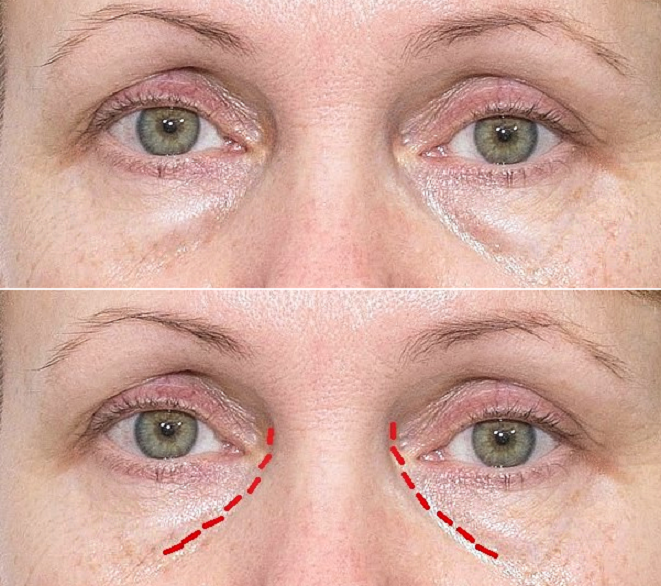 Здравствуйте, уважаемые читатели моего блога. С возрастом становится все проблематичнее найти косметические средства, которые работают так, как нужно. Сегодня хочу рассказать о 2 средствах, которые отлично работают на зрелой коже, и подойдут они очень многим, особенно для повседневного использования. С возрастом далеко не каждый консилер даст нужный результат, так как одни варианты могут пересушить нежную кожу, создать сеточку новых морщин, вторые — скататься, забиться в имеющиеся морщинки, тем самым их подчеркнуть, третьи — еще больше выделить мешки и припухлости под глазами. Думаю, многие из вас знают, что косметика со светоотражающими частицами способна освежить кожу, однако сияние должно быть максимально деликатным — иметь именно натуральный финиш, без излишнего блеска, причем что касается консилеров, то наносятся такие продукты на область под припухлостью/мешком. На фото схематично показала, куда наносится консилер. Если вы возьмете излишне сияющий консилер и нанесете его на всю о