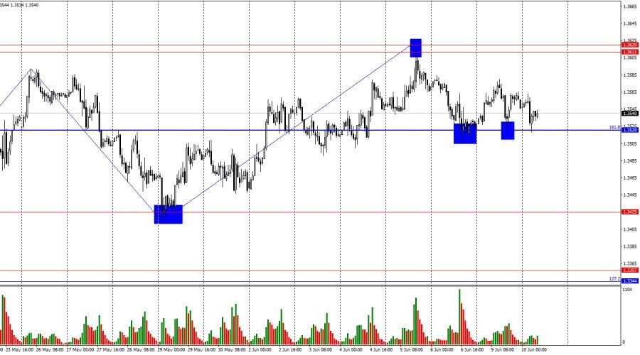 https://basechop.ru/wordpress/?p=45606 Добрый день, уважаемые трейдеры! На часовом графике пара GBP/USD в понедельник выполнила два отбоя от уровня коррекции 161,8% – 1,3520, но процесс роста начать не смогла. Сегодня, во вторник было выполнено закрепление под этим уровнем, что позволяет рассчитывать на продолжение падения в направлении уровня 1,3425 и зоны поддержки 1,3344–1,3357. Медведи резко и неожиданно перешли в наступление. Ситуация с волнами четко указывает на сохранение «бычьего» тренда. Последняя волна вверх пробила пик предыдущей волны, а последняя волна вниз не пробила предыдущий лоу. Быкам сложно будет рассчитывать на дальнейший рост без новых сообщений от Дональда Трампа об увеличении или введении новых пошлин на импорт, но президент США готов повышать пошлины, воевать с иммигрантами. Таким образом, быки имеют все основания для новых атак. В понедельник информационный фон отсутствовал, чем и объясняется низкая активность трейдеров в течение дня. Сегодня ситуация поменял