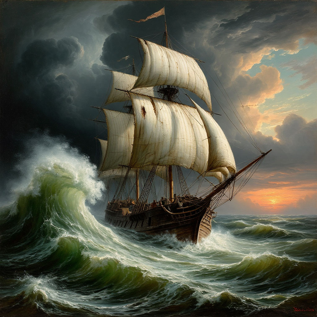 Потерян парусник в бескрайнем море, Гонимый ветром иль на беду, то ли на горе, Он смело шел вперёд. Ошметки парусов, заброшенный штурвал... Волна его несет на судьбоносный вал. Неясно, что его там ждёт. И сбился курс, в пыли лежит секстант. А бравый капитан, не выполнив контракт, Исчезнул в бездне. Лишь досками скрипит, не слышны голоса. Команды нет в живых, матросы уж на небесах. Судьба к ним нелюбезна... В отчаянии, одинок, берет на штурм волну, Он или выплывет на свет, или пойдёт ко дну. Такой простой расчёт. И стихла буря, волненье моря прекратилось... Но судно в шторм устало и с участью смирилось, И больше не всплывёт. #мрачнаяпоэзия #авторскиестихи