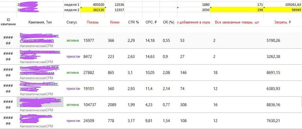 МОЯ СИСТЕМА АНАЛИЗА WB: Нейросети + статистика = больше продаж Друзья, вижу, что мой прошлый пост собрал много огонёчков! Понимаю, что тема очень актуальна для многих. Если будет полезно, поддержите своими реакциями — для меня это важная мотивация продолжать писать. Моя система анализа рекламы Как и многие селлеры на маркетплейсах, я регулярно анализирую эффективность своих рекламных кампаний. За последний год выработал рабочую систему, которая сочетает ручной анализ и использование нейросетей для поиска новых точек роста. Для анализа выбираю неделю как основной период. Почему именно неделя? Маркетплейсы — очень динамичная среда, где всё быстро меняется: спрос, конкуренты, алгоритмы. Поэтому важно отслеживать динамику показателей и вовремя принимать решения. Как строится процесс анализа: 1. Выделил для себя пятницу как день обязательного анализа статистики по всем активным кампаниям. В этот же день меняю настройки, тестирую новые гипотезы, включаю и отключаю отдельные группы реклам