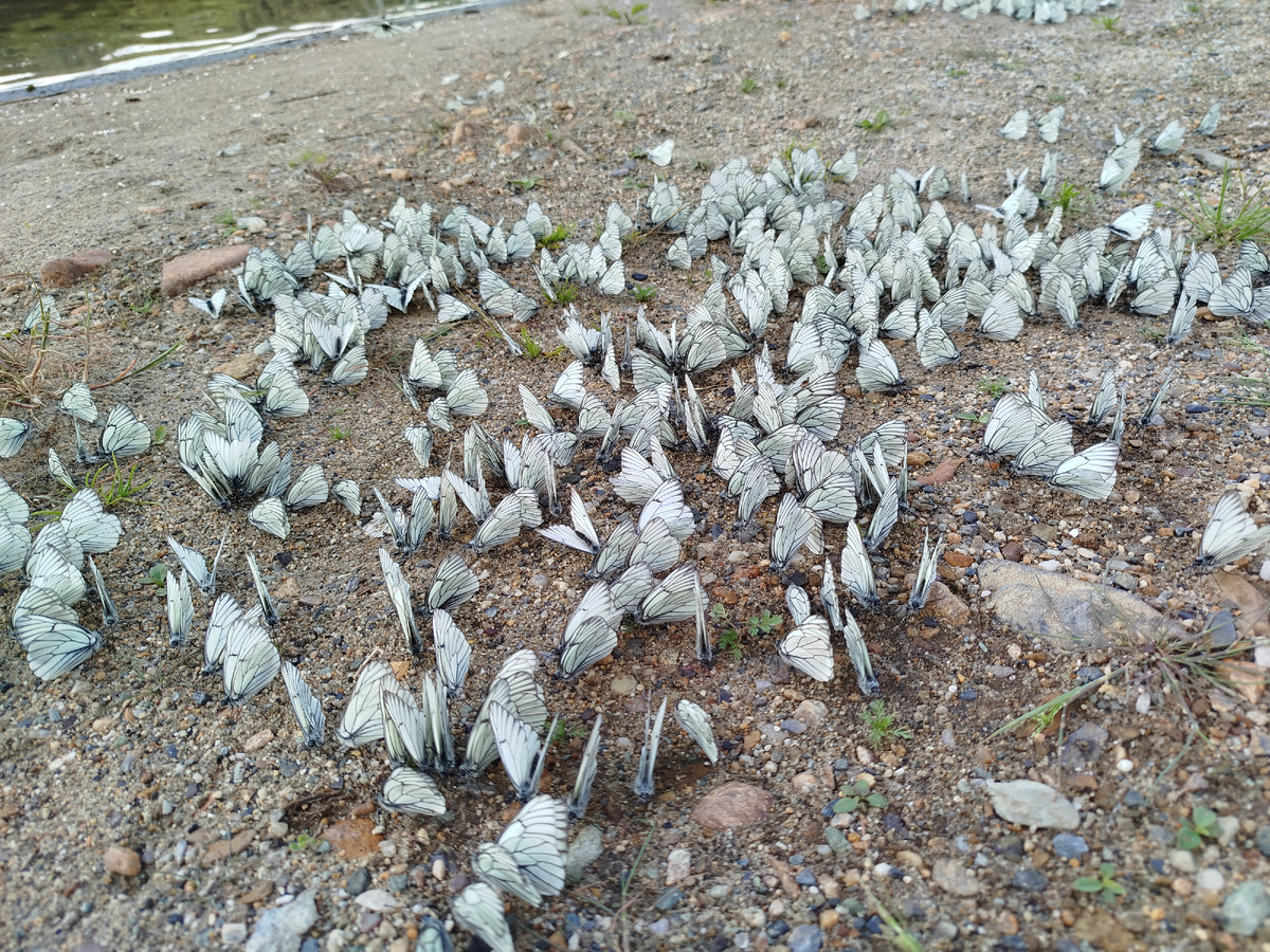 Никогда не видела столько бабочек в одном месте. Они тут повсюду. Вдоль дороги на земле, у озера прямо на песке... Собираются в такие группы. Зачем? Конечно, наблюдать за ними интересно. Да и сами по себе бабочки безвредны. А вот их гусеницы способны нанести серьёзный урон растениям. Можете представить себе гусениц в таком же количестве? А ведь эти милые бабочки отложат яйца... Но детям было интересно наблюдать за таким количеством крылышек. Да и не только детям ))) Все же не каждый день увидишь такое. Видео можно посмотреть тут: Всё-таки природа удивительна!
