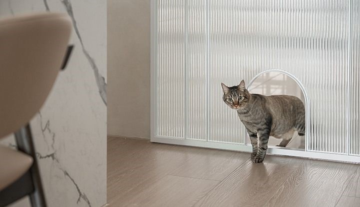 Интерьер с питомцем — это про выносливость. Мокрые лапы, пролитая вода из миски, неожиданные случайности — все это не повод для стресса, если выбраны правильные материалы.