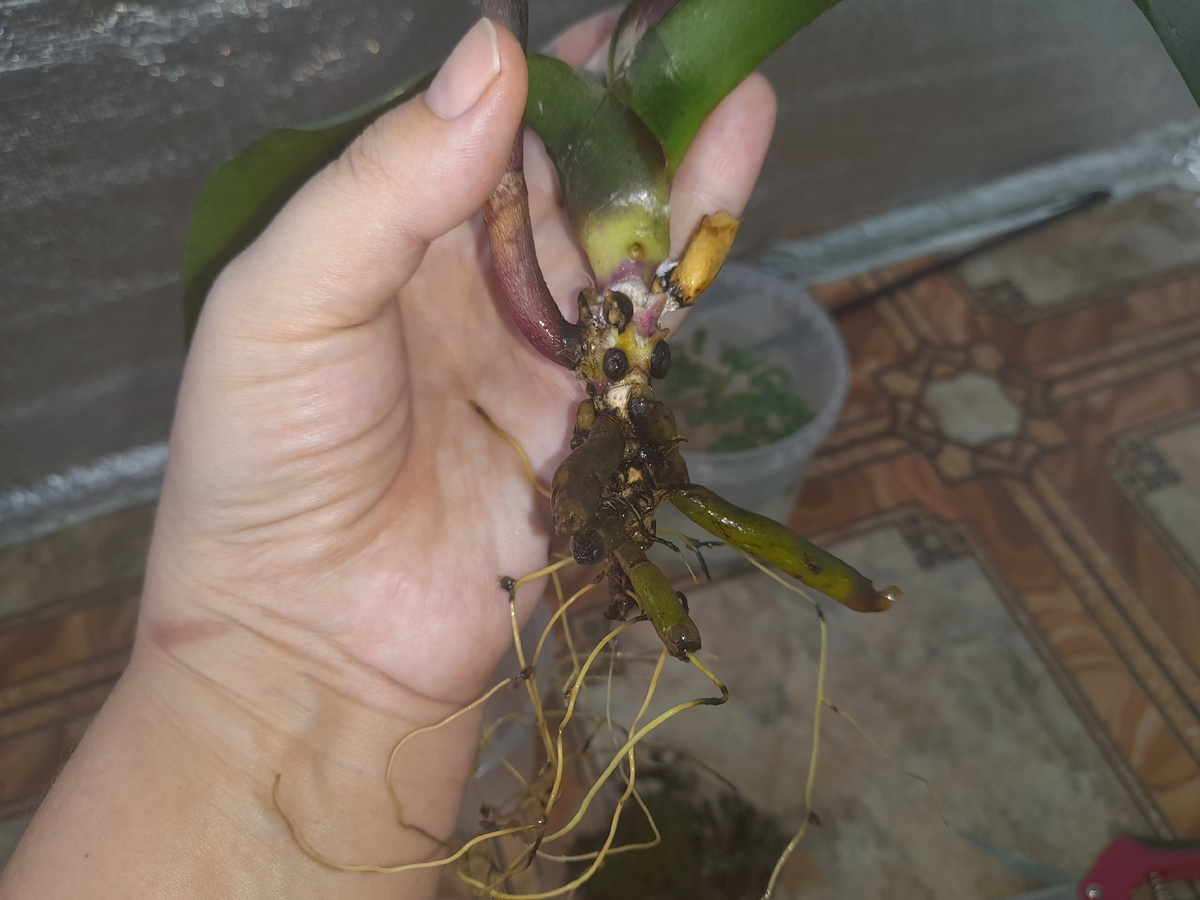 У одной из уценочных орхидей сгнил весь веломен на корнях. Подозрения закрались, когда грунт перестал просыхать после обычного полива. Стало ясно, что растению нечем пить, т. к. визуально корни перестали просматриваться в посадке. Срочно сделала пересадку, заменила полностью грунт и убрала все гнилые части. Орхидея была замочена в чесночной воде с добавлением сока лимона, чтобы активировать иммунитет и подавить гнилостные процессы. Для нового грунта использовала сосновые шишки, в качестве дренажа, и крупную кору, слоями со сфагнумом. Посадила в закрытую систему и поставила на светлое место, но без доступа солнечных лучей. Остаётся ждать. Как вы думаете, приживётся или пропадёт? Напишите в комментариях и подпишитесь, чтоб не пропустить дальнейшее развитие событий. #орхидея #орхидеи #орхидеякорень #орхидеяпересадка
