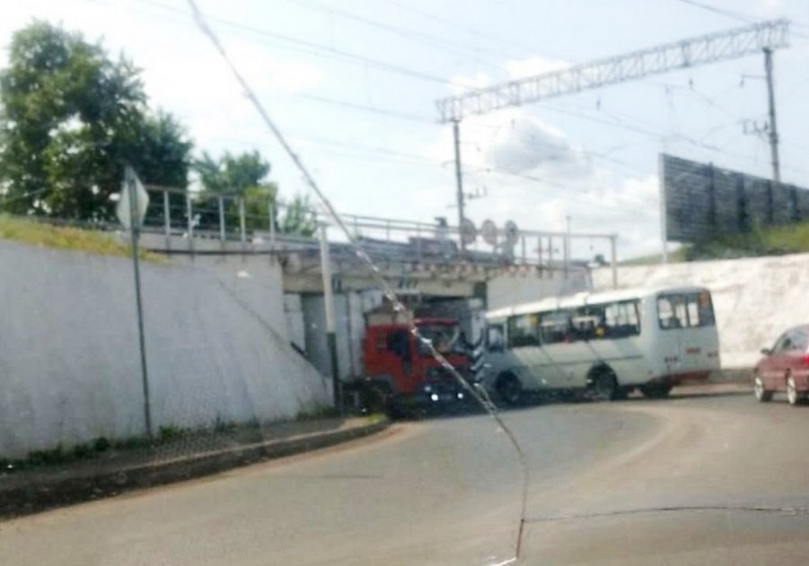 В Курске фура застряла под железнодорожным мостом