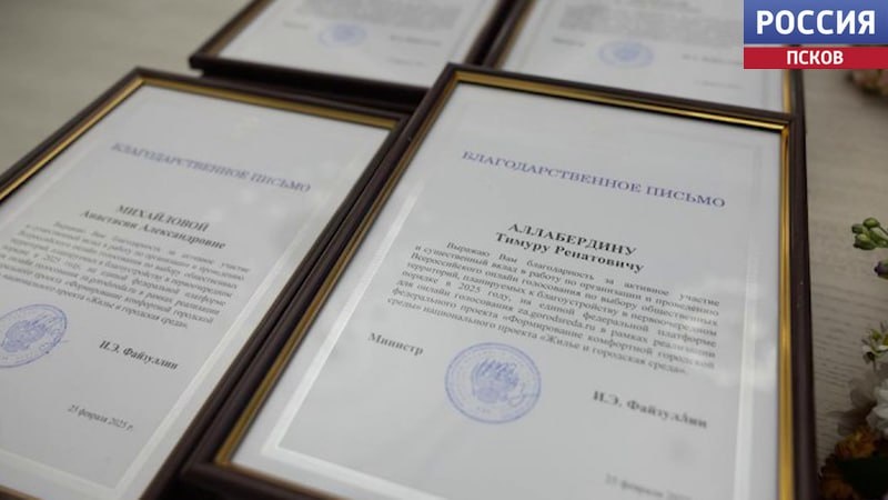 📄Команду Псковской области наградили за активное участие в организации и проведении всероссийского онлайн-голосования по программе "Формирование комфортной городской среды". Федеральными наградами были отмечены более 40 человек. Благодарственное письмо от министра строительства и ЖКХ России вручили директору ГТРК "Псков" Наталье Юрченко за активное участие и существенный вклад в проведение онлайн-голосования. Как отметил вице губернатор Игорь Шатурный, в нем приняли участие почти 90 тысяч человек, что стало возможно благодаря активной работе целой команды. Программа ФКГС действует в регионе с 2021 года, за это время благоустроено больше 500 общественных территорий.