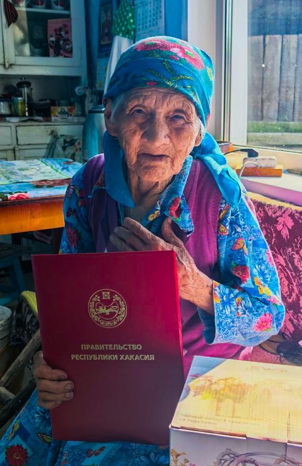 Сегодня 95-летие отмечает труженица тыла Мария Сафроновна Чебодаева Мария Сафроновна родилась в с. Усть-Сос Бейского района в многодетной семье. Во время Великой Отечественной войны трудилась в колхозе разнорабочей, помогала взрослым на полях. В 1950 году вышла замуж, молодая семья переехала жить и работать в с. Усть-Есь Аскизского района. Долгие годы трудилась в местном совхозе, в основном помощником чабана, откуда ушла на пенсию. У Марии Сафроновны три сына и дочь, десять внуков и пять правнуков. По моему поручению имениннице передали поздравительный адрес от Президента России и правительства Хакасии, подарок от правительства республики. Желаю Марии Сафроновне доброго здоровья, долголетия и семейного благополучия! @konovalov_khakasia19 #ВалентинКоновалов #ГлаваРХ #Хакасия