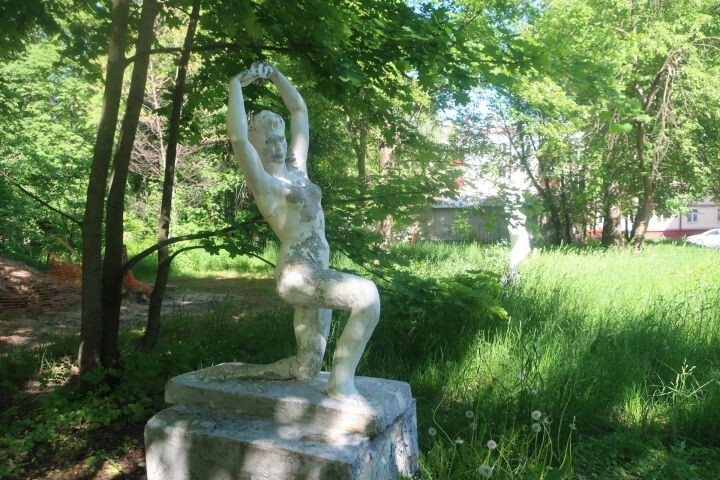 В Зеленодольске во дворе дома № 64 на ул. Ленина разрушаются раритеты советского периода Кажется, ещё недавно на улицах Зеленодольска можно было видеть советские статуи, призванные украшать общественные места. Но с уходом СССР за скульптурами перестали ухаживать, они ветшали, разрушались, их убирали, пока они не исчезли совсем... Кроме одного места в неприметном дворе Зеленодольска. А спасителем статуй стал житель города Василий Огурцов. Если бы не он, то в городе не осталось бы ни одной уличной скульптуры из нашего детства. Вот как об этом рассказывает старожил дома № 64 Динара МИФТАХОВА. — Мне было лет шесть-семь, значит, шёл 1963 или 1964 год, — вспоминает Динара Мансуровна. — На месте ДК им.Горького раньше стоял летний кинотеатр, а около него располагался небольшой парк: взрослые играли в городки, мы, дети, ходили в кино (помню, что смотрела фильм «Ко мне, Мухтар!»). Тогда статуи точно были там. Потом площадку начали реконструировать, кинотеатр сломали, и статуи, видимо, оказались