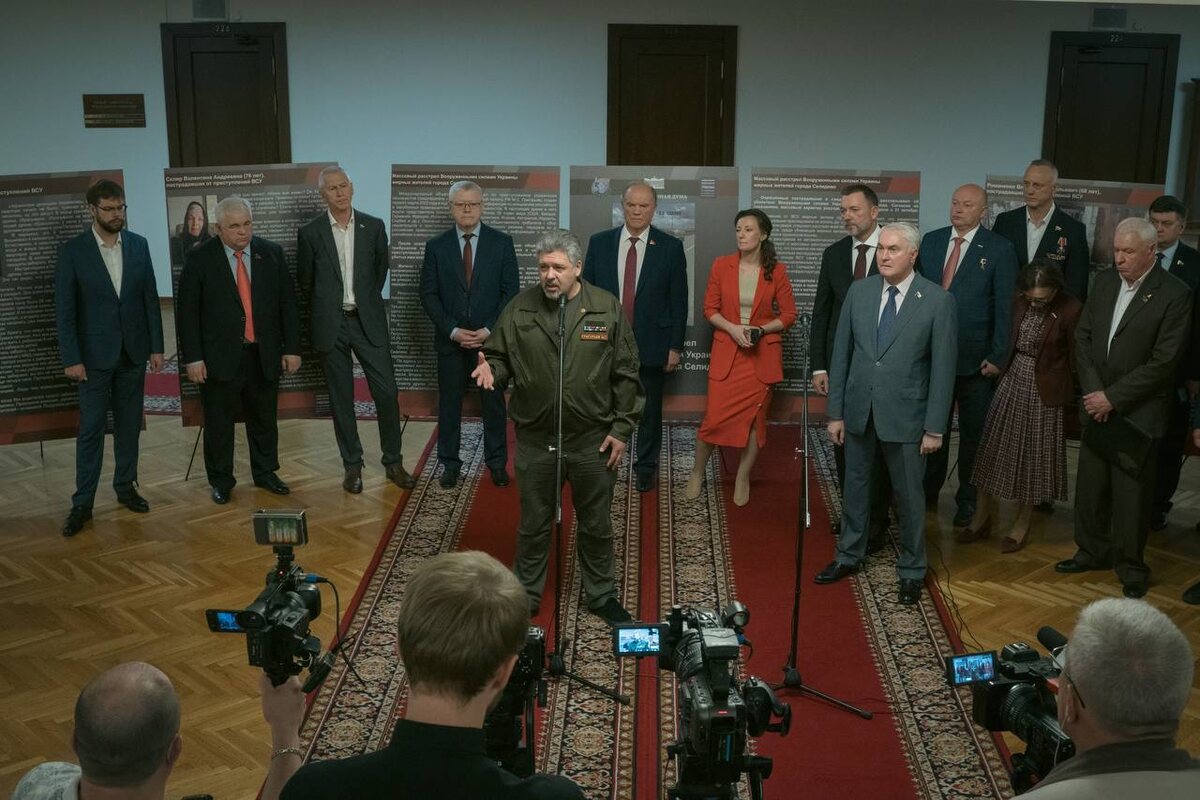 В Государственной Думе РФ вместе с Д. Саблиным, А. Картаполовым, Г. Зюгановым, С. Мироновым, Я. Ниловым и другими открыл нашу выставку "Массовый расстрел вооруженными силами Украины мирных жителей г. Селидово", подготовленную на основе материалов Международного общественного трибунала по преступлениям украинских неонацистов. Скачать доклад Подписаться на ТГ-канал МАКСИМА ГРИГОРЬЕВА