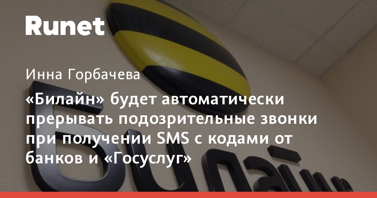 «Билайн» будет автоматически прерывать подозрительные звонки при получении SMS с кодами от банков и «Госуслуг»