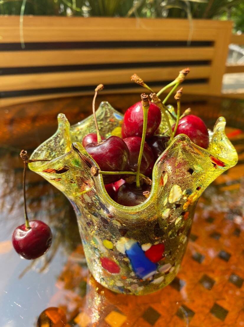 Вазочка с черешней — это не только красивое, но и аппетитное украшение стола