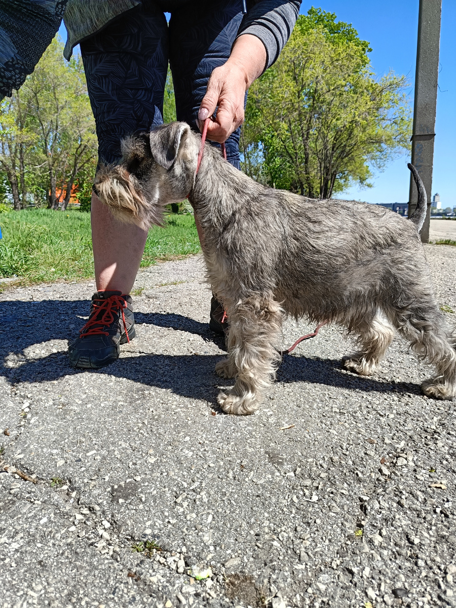 Приехав в Тольятти, я узнала, что вскоре будет выставка собак и у меня будет возможность выставить Ирму. Теперь уже в классе щенков. Нашли хендлера, которая согласилась потренировать и выставить мою собаку. Нашли место подходящее для тренировок и начались собачьи премудрости. Как правильно стоять, ходить, бегать, показывать зубы и " Продавать глазки".Последнее меня очень развеселило. Так как Ирма особо мне в глаза до этого не смотрела, научили её этой премудрости. Даже домашнее задание было на эту тему)))). Зато теперь она очень пользуется этим навыком. Как я называю- ох уж эти умильные глазки кота из мультика про Шрека.. За 3 недели( тренировки проходили 1 раз в неделю) Ирма вполне поняла, что от неё требуется и уже спокойно ходила с тренером, и выполняла все её команды. Наступил день выставки. Собачку перед этим конечно намыли- начесали. Пришли мы на выставку не к началу, а ко времени нашего ринга. И не заметили сами как, но свой ринг мы прошляпили... Собак много, разго