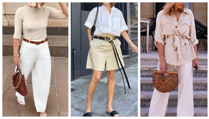 В летнее время года стилисты советуют чаще составлять образы со светлыми льняными брюками и бежевым верхом: рубашкой, жакетом, топом, майкой, оверсайз футболкой, лонгсливом или же элегантной блузой.