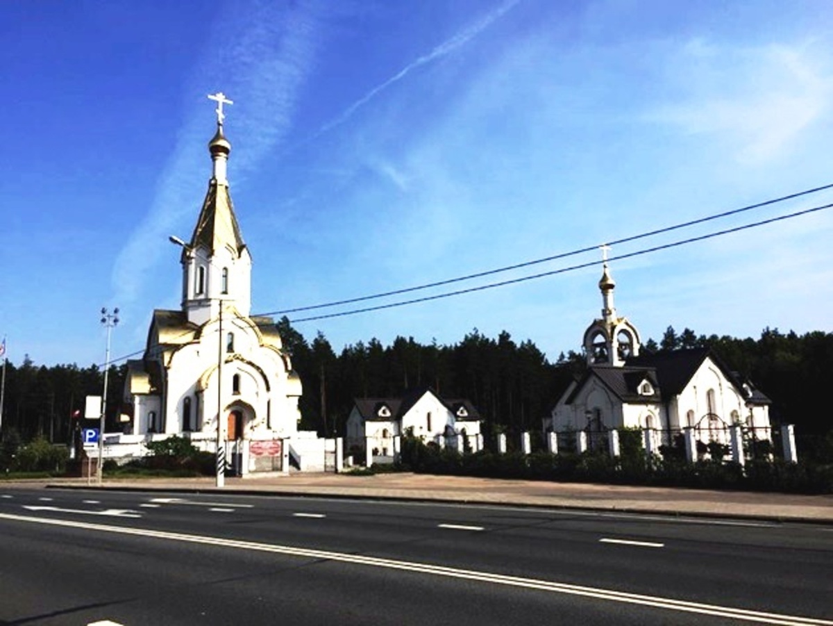 Проехали Катынский мемориал, прямо… с левой стороны дороги.