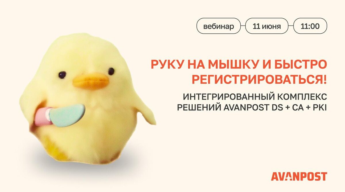 🚨 Важное напоминание! Друзья, уже завтра 11 июня в 11:00 (Мск) пройдёт вебинар на тему: «Avanpost DS + CA + PKI: интегрированный комплекс решений, способный полностью обеспечить потребность в сертификатах для современных гибридных IT-инфраструктур.» 🎤 Спикер: директор по криптографии Евгений Галкин Обсудим: 🔴 Автоматизацию выпуска сертификатов для Linux в домене 🔴 Autoenrollment в Linux-средах 🔴 Интеграцию DS, CA и PKI решений Не забудьте поставить себе напоминание, а лучше сразу будильник 🔪 📎 Регистрация по ссылке – и до завтра! Подписаться на Avanpost