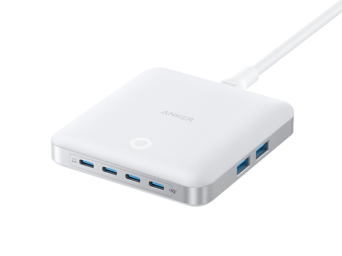 Компания Anker анонсировала выход в Европе многофункционального зарядного устройства Nano Charger 130W, способного одновременно заряжать до шести устройств, сообщает издание Notebookcheck. Модель, ранее запущенная в Китае в мае 2025 года, использует технологию GaN для компактного дизайна и высокой мощности. Image: Anker Зарядное устройство оснащено четырьмя портами USB-C и двумя USB-A, а его максимальная общая выходная мощность составляет 130 Вт. При этом распределение мощности по портам следующее: Anker утверждает, что устройство способно зарядить два ноутбука MacBook Air 15 дюймов до 50% за 30 минут, а MacBook Pro 14 дюймов — до 50% за 27 минут. Модель выполнена в тонком корпусе толщиной 19 мм, весит 320 граммов и доступна в чёрном и белом цветах. В комплект входят съёмная вилка переменного тока и защитный чехол для хранения. Зарядное устройство поддерживает технологии Power IQ 3.0 для оптимизации заряда, PPS (Programmable Power Supply) и ActiveShield 2.0 для контроля температуры. An
