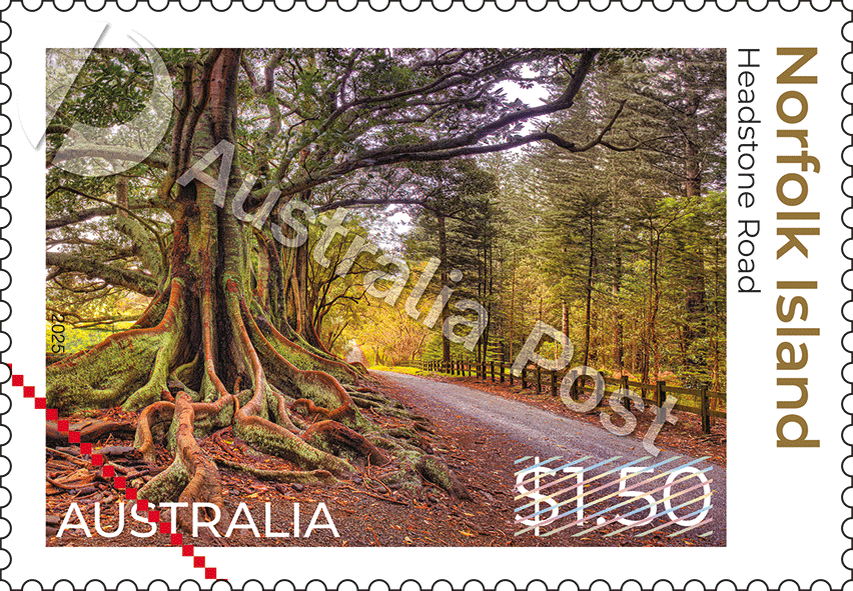 Остров Норфолк и соседний остров Филиппа были сформированы в результате извержений вулканов между 2 и 3 миллионами лет назад. Миллионы лет выветривания базальтовой породы создали множество типов почв, которые сегодня поддерживают многие местные и интродуцированные растения и животных. До начала заселения европейцами в 1788 году большая часть главного острова была покрыта субтропическими тропическими лесами. Благодаря своему удаленному расположению, остров Норфолк питал множество уникальных видов растений и животных. После заселения большая часть острова была постепенно расчищена для сельского хозяйства и других целей, и многие районы в настоящее время сохранены как национальные парки. На почтовых марках этой серии изображены два знаковых растения острова Норфолк, одно интродуцированное, а другое местное. на почтовом блоке открывается живописный вид на исторический заповедник Кингстон Коммон с характерными соснами острова Норфолк, окружающими пасторальный пейзаж мягко покатившихся зеле