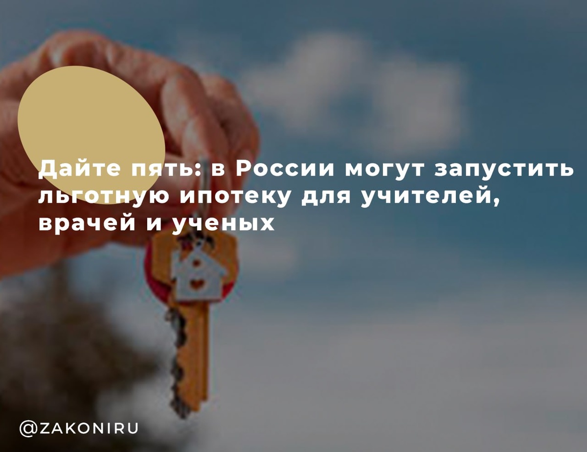 🇷🇺 В России могут запустить льготную ипотеку для учителей, врачей и учёных