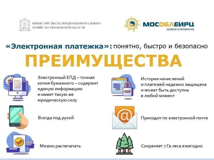 Пилотный проект по введению электронного Единого платёжного документа ЖКУ стартовал в Подмосковье. Министерство ЖКХ МО запустило пилотный проект, который позволит собственникам получать платежные документы в электронном виде на региональном портале Госуслуг. 🟢 Основные преимущества цифрового формата заключаются в том, что электронная квитанция приходит мгновенно и не теряется, защищена от подделок мошенниками и не требует затрат на печать и доставку. Как подключить электронные платежки? 1️⃣зайти на региональный портал Госуслуг 2️⃣нажать «Получать ЕПД онлайн» 3️⃣подтвердить согласие на получение электронных платёжек ✔️квитанции начнут приходить уже со следующего месяца Изменить формат получения квитанции вновь можно ежемесячно с 1 по 19 число включительно.