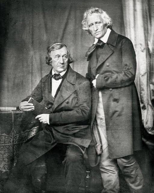 Именно так выглядели знаменитые братья Гримм. Перед вами единственная сохранившаяся фотография Якоба и Вильгельма, сделанная в 1847 году. Во всём мире братьев Гримм знают прежде всего как авторов детских сказок. Однако их жизнь и творчество значительно шире, чем просто сборники сказочных историй. Якоб Людвиг Карл Гримм родился 4 января 1785 года, а Вильгельм Карл Гримм – 24 февраля 1786 года в городе Ханау, Гессен. Они были самыми старшими среди своих шестерых выживших братьев и сестёр (всего у родителей родилось восемь детей, но, как часто случалось в то время, двое умерли в младенчестве). Их родители, Филипп Вильгельм Гримм и Доротея Циммер, принадлежали к верхушке среднего класса. Отец работал юристом и занимал должность чиновника, а мать происходила из уважаемого гессенского рода. К сожалению, отец умер рано, в 1796 году, что стало серьёзным испытанием для семьи. Вдова и её дети оказались в тяжёлом финансовом положении, что наложило на старших сыновей дополнительную ответственност