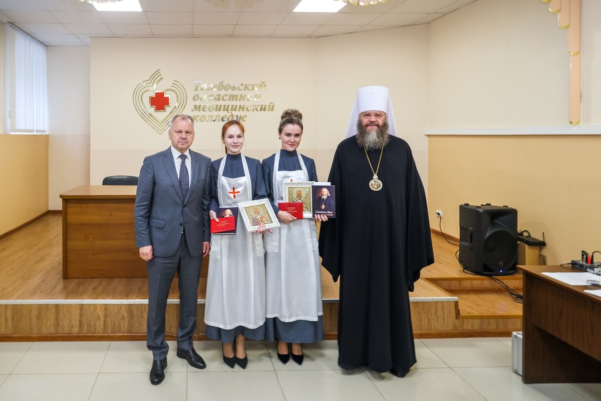 Митрополит Тамбовский и Рассказовский Феодосий и директор областного медицинского колледжа Евгений Лапочкин вручили стипендию имени архиепископа Луки двум будущим медикам. Лауреатами стали третьекурсницы отделения “Сестринское дело” медицинского колледжа А.А. Тарасова и Ю.А. Чугунова. Торжественная церемония прошла в зале учебного заведения.