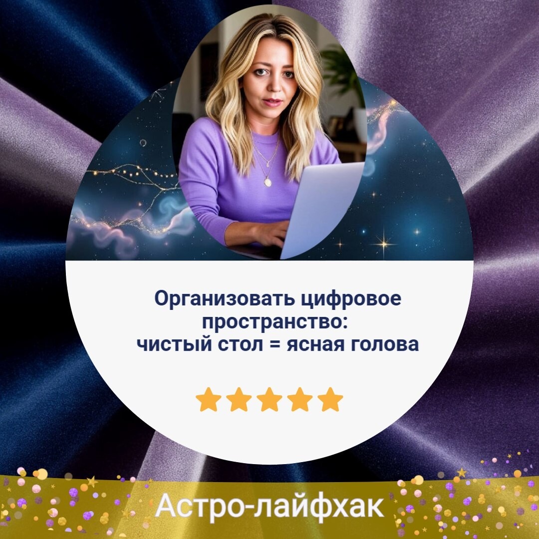 Вы когда-нибудь замечали, как после уборки квартиры становится легче дышать и мыслить? То же самое происходит с цифровым пространством. Телефон и компьютер — это не просто гаджеты. Это отражение твоего внутреннего мира 💫 Иногда кажется, что беспокойство или рассеянность возникают ниоткуда… а на самом деле — они прячутся в 100+ непрочитанных уведомлениях, папках под названием «разное» и 50 вкладках браузера 🙈 🧠 Почему важно организовывать цифровое пространство? 🔹 Уменьшается уровень стресса 🔹 Появляется больше концентрации 🔹 Экономится время (не ищешь, где ты сохранила(ил) тот файл 😅) 🔹 Вдохновение приходит быстрее, когда вокруг порядок 💡 Простой принцип: Чистый экран = ясный разум 🧹 Базовые лайфхаки для всех: Убери рабочий стол: Оставь только то, что нужно сейчас. Сбрось всё лишнее в папку "Архив" и разберись позже. Рассортируй файлы: Создай понятную структуру: проекты, фото, документы, личное. Добавь цветовые метки, если можешь. Очисти почту: Подпишись на рассылки, ко