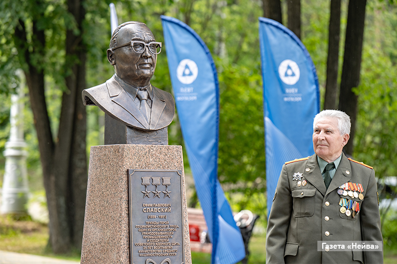 Легендарный министр среднего машиностроения курировал развитие всей атомной отрасли страны. Сегодня в сквере Дружбы торжественно открыли бюст Ефиму Павловичу Славскому — легендарному министру среднего машиностроения: атомной отрасли он посвятил 40 лет, из них 30 (с 1956-го до 1986-й год) ее возглавлял! Горожан с этим знаковым событием поздравили глава НГО Вячеслав Тюменцев, директор по региональной работе и социальным проектам АО «ТВЭЛ» Юрий Кривов, генеральный директор УЭХК Александр Дудин и председатель Думы НГО Михаил Денисов. В ходе торжества говорили о заслугах нашего министра. От первой АЭС в Обнинске до огромной индустрии с десятками предприятий, атомным флотом, нашими атомградами, учебными заведениями — все это на протяжении более трех десятилетий создавалось под руководством министра Славского и при его непосредственном участии. Идея установки бюста принадлежит офицерам-ветеранам ВСЧ и общественной организации «Союз Чернобыль». Инициатива реализована благодаря финансовой подде