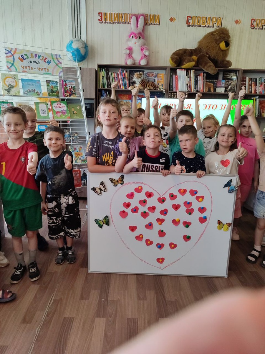 🎉Увлекательный праздник «Мы друзья, а это значит - справимся с любой задачей» Ко Дню друзей в библиотеке-филиале № 11 прошёл увлекательный праздник, наполненный радостью общения «Мы друзья, а это значит - справимся с любой задачей». 🏕Гостями библиотеки в этот день стали ребята 1-го отряда пришкольного лагеря «Новое поколение» ГБОУ «Школа № 8 г.о. Енакиево ДНР». Ребята участвовали в конкурсах, разгадывали загадки, рассказывали о своих друзьях, обсуждали интересные литературные истории о верных друзьях и крепкой дружбе. Праздник прошёл в тёплой и дружеской атмосфере, видеоклип «Не теряйте друзей» так всем понравился, что ребята попросили его повторить. В завершение мероприятия все участники оставили свои пожелания на маленьких сердечках, из которых сложили большое доброе сердце. Все остались довольны, получив заряд положительных эмоций, День друзей в библиотеке оставил самые добрые и радостные впечатления! Официальная информация и новости городского округа Енакиево на сайте