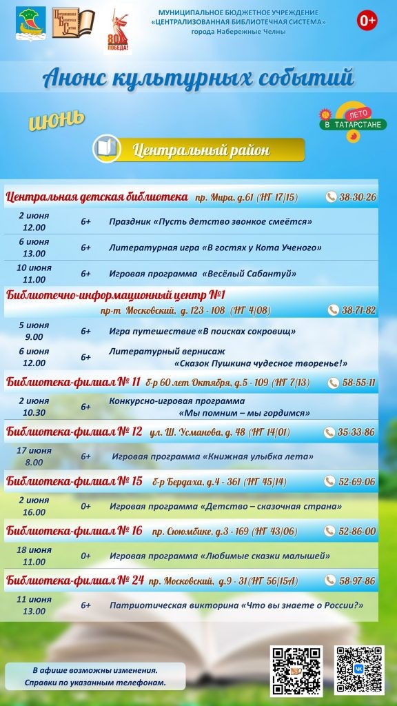 ‼Обратите внимание: расписание может незначительно меняться. Для получения точной информации о мероприятиях обращайтесь по указанным контактам в библиотеки-филиалы. Контакты на странице Библиосеть.