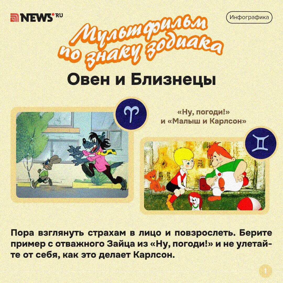 Знакомы с детства: киностудии «Союзмультфильм» исполнилось 89 лет! В честь праздника очень кстати будет пересмотреть любимых картины. А выбрать мультик мы вам поможем: открывайте гороскоп NEWS ru — прекрасный вечер в компании героев нашего детства обеспечен. Рассказывайте в комментариях, какой ваш любимый мультфильм? ⭕ Подписаться | Прислать новость | Буст