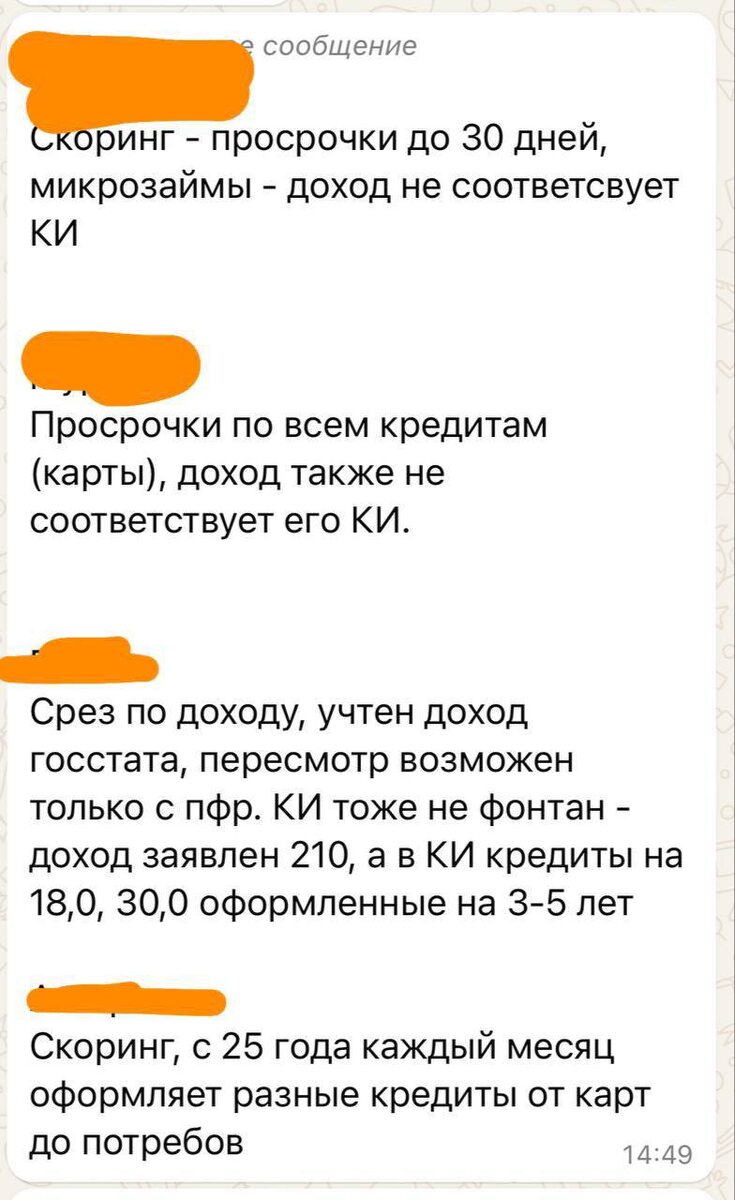 🔖Мы с вами, коллеги, по привычным шаблонам «подгоняем» доход клиента к нужной сумме кредита и полагаем, что система одобрит как запрошено! ✅Исторические обращения клиента: суммы кредитов, которые клиент запрашивал или обслуживал очень красноречиво свидетельствует о его истинном доходе. Все запросы отражены в бюро кредитных историй и являются основанием анализа портрета клиента. ☝️Выше скрин комментариев по отказам в одном из крупных банков. Доход не соответствует КИ (кредитной истории) - комментарий, который четко говорит: заявляете 200 тыс в месяц (условно) а просите 20 тыс кредит … сомнительно! Так же, банк всегда соотносит заявленный доход с доходом в сфере (отрасли) и в должности заемщика. ✔️ Выбираем банк, который имеет не скоринговую модель, такие еще есть (одобряет «руками»); ✔️ Банк, который готов учесть доход, подтвержденный косвенно (выписки по картам физ лиц); ✔️ привлекаем со заемщиков с прозрачным доходом; Сегодня возможности банков по проверке достоверности с