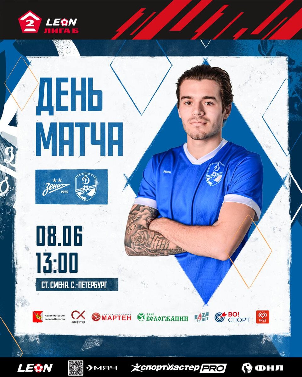 День матча! Играем в Санкт-Петербурге 👊 ⚽ Соперник — «Зенит-2» (Санкт-Петербург) 🕐 Начало игры — в 13:00 📺 Трансляция на VK Видео Давай, «Динамо»! 👊🏻 @dynamovologda