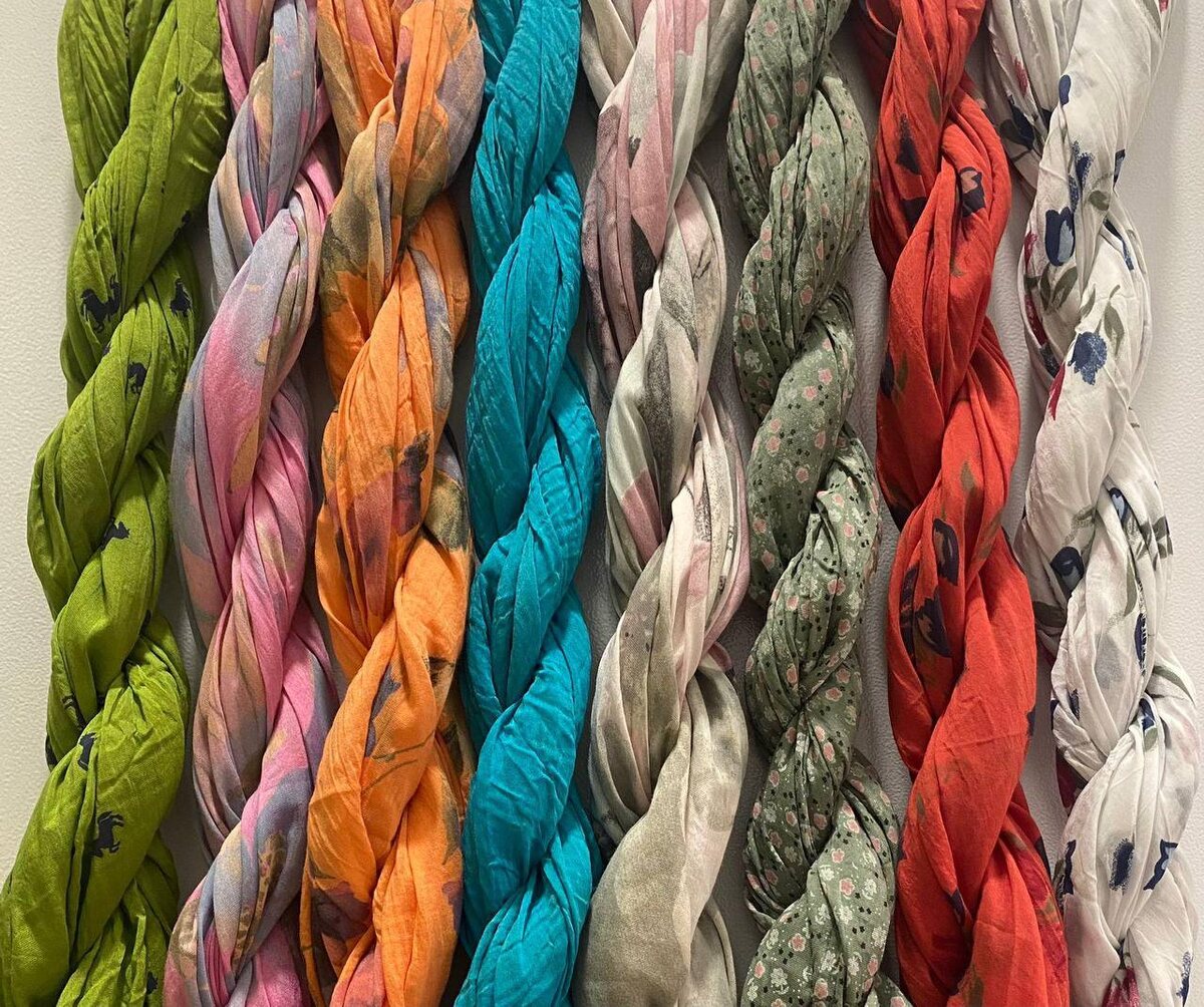 Хлопковые шарфики, из тонкой ткани, скроены так, чтобы было максимально удобно повязать и «уложить» на шее 🤍