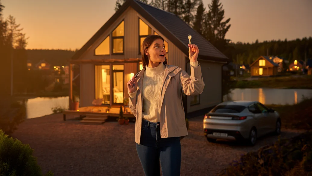 И вот он — её дом. Современный коттедж с большими окнами, верандой, аккуратной лестницей и коваными перилами. А в гараже — блестящая серебристая машина, прямо как из рекламы.