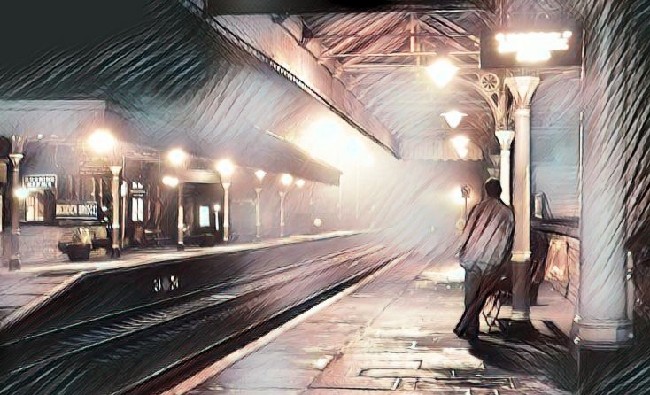 Сворачивают на право. Замечаю, как будто воздух другим стал. Густым что-ли. Трясется как студень. Голова у меня закружилась. Растопырил я руки, ищу за чтобы ухватиться. Присел на корточки чтобы не упасть, руками землю держу. Через минуту всё стало как прежде, только темнее как будто. Подумал может давление скакануло. Иду дальше. Что за чудо...вместо вокзала белокаменного, деревянное здание стоит. Ну думаю, свернул наверно не туда, не в тот проулок. Оглянулся, да нет, все правильно.