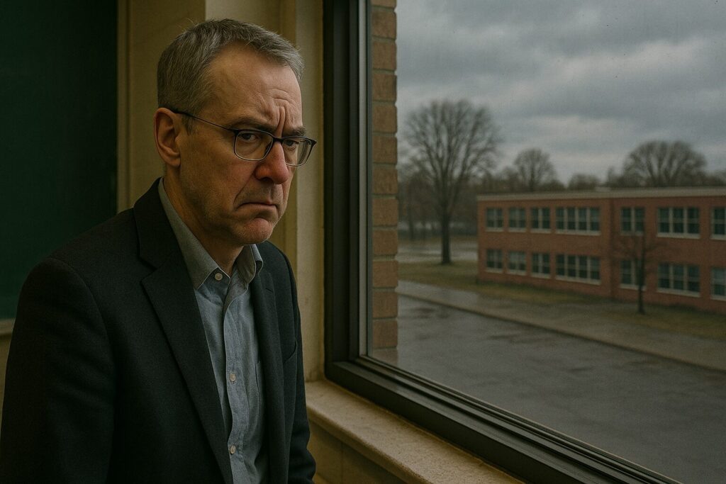 Антон стоял у окна своего кабинета в школе и смотрел на опустевший после уроков двор. Последний автобус с детьми только что отъехал от ворот.