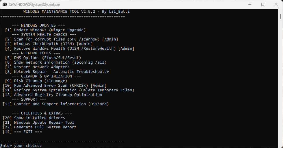 Windows — штука капризная: то обновления сломаются, то сеть глючит, то системные файлы повредятся. Обычно приходится лечить это вручную — через SFC, DISM, сброс DNS или ковыряние в службах. Но есть способ быстрее. Обычный .bat-файл, который делает за вас то, что системные администраторы и продвинутые пользователи делают вручную: Важно: Если Windows тормозит, глючит или не обновляется — этот скрипт может сэкономить кучу времени. Вместо гугления "как починить DISM" — запускаете один файл и выбираете нужный пункт. Проще некуда. Скачать скрипт можно тут: Windows_Maintenance_Tool_V2.9.2 20 Kb Версия - 2.9.2