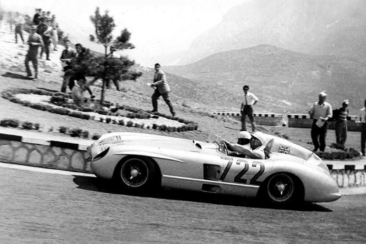 Наибольший интерес в любом состязании, конечно, вызывают достижения участников. И в этой заметке я хотел бы рассказать о трёх главных рекордсменах "Красной стрелы". Первое достижение принадлежит Сэру Стирлингу Моссу (фото 1). Британец, выступавший в 1955 году на знаменитой "Серебряной пуле" марки Mercedes-Benz вместе со штурманом Деннисом Дженкинсоном, сумел под стать автомобилю "пролететь пулей" от Брешии до Рима и обратно, установив абсолютный рекорд скорости. Представитель "туманного Альбиона" преодолел 1597 километров за 10 часов, 7 минут и 48 секунд, показав среднее значение на спидометре в 158 км/ч. Это достижение так и не было перекрыто за последующие 2 года, что Mille Miglia проводилась в формате классической гонки. После трагедии близ Гуидицолло в 1957 году мероприятие сошло на нет, а 20 лет спустя, в честь 50-летия со дня первого старта, "Красную стрелу" решили воскресить, но уже в виде ретро-ралли на регулярность. В нём она существует и по сей день, а до участия в "Милле Ми