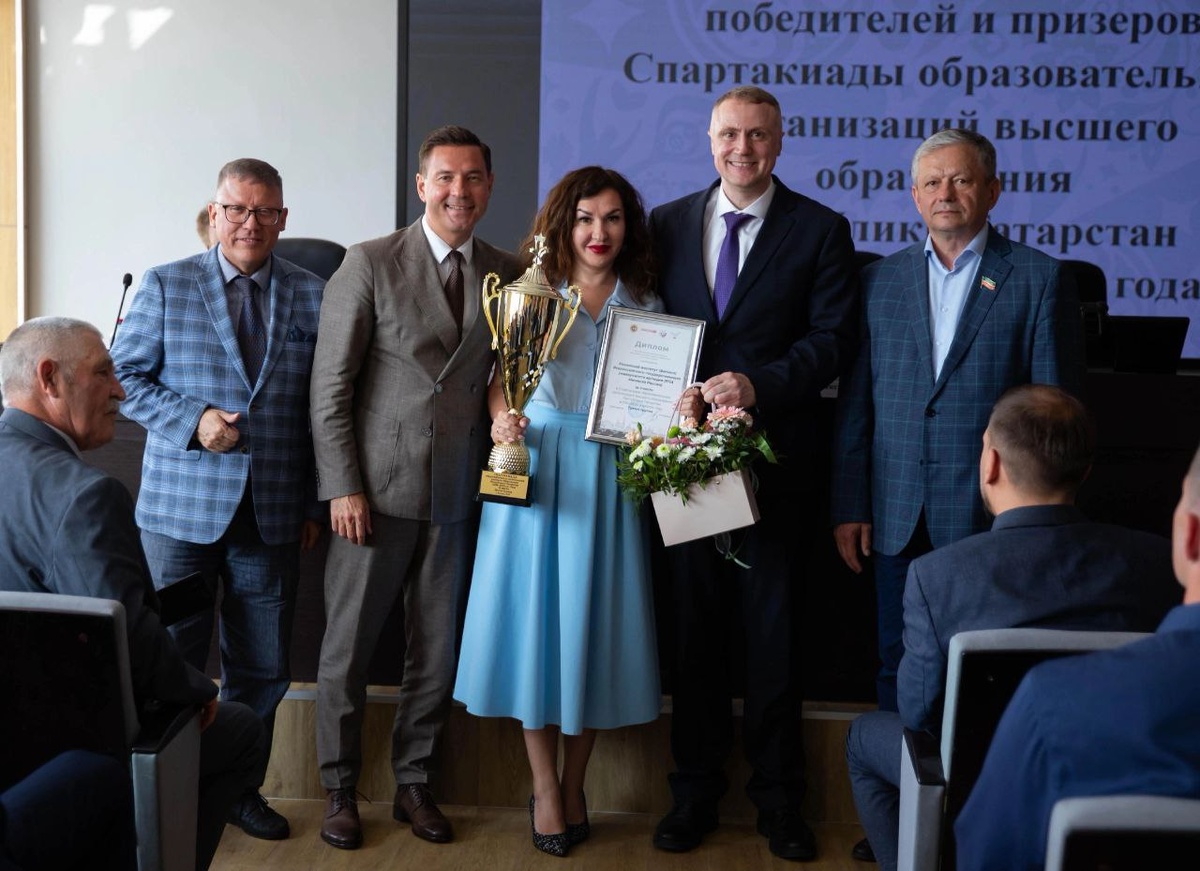 В актовом зале Министерства спорта Республики Татарстан состоялась торжественная церемония награждения победителей и призёров Спартакиады образовательных организаций высшего образования Республики Татарстан за 2024/2025 учебный год. Спартакиада ООВО РТ 2024/2025 года включала 29 видов программы по 26 видам спорта, включая 9 студенческих спортивных лиг. Всего в этом спортивном событии приняли участие 20 высших учебных заведений республики. 🏆 С гордостью сообщаем, что Казанский институт (филиал) ВГУЮ (РПА Минюста России) занял 2 место в третьей группе по итогам спортивного сезона. Приняли кубок и диплом начальник отдела по воспитательной работе Лилия Наилевна Галеева и активистка студенческого совета София Кулагина. Поздравляем наших спортсменов, тренеров и всех причастных к этому успеху! Также выражаем искренние поздравления всему студенчеству. Ваши достижения вдохновляют и мотивируют к новым победам!