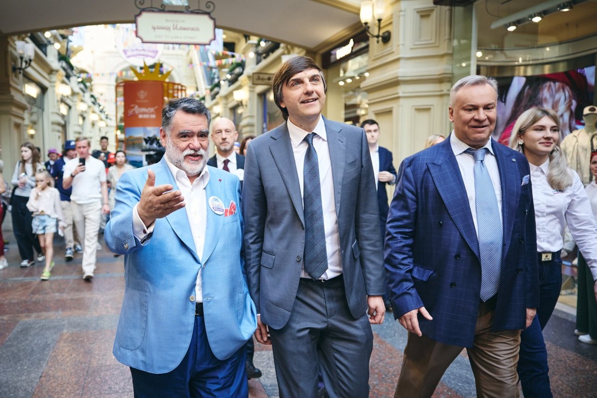В экспозицию вошли стенды, в том числе посвященные объявленному в 2025 году Минпросвещения России Году детского отдыха. Праздничное мероприятие в день открытия выставки было приурочено к ежегодному Дню ГУМовского мороженого – благотворительной традиции, в рамках которой знаменитости примеряют на себя профессию мороженщика. Это лакомство давно стало визитной карточкой магазина. Многие заходят в ГУМ специально за ним, ведь этот вкус невозможно забыть. 9 июня любимое ГУМовское мороженое можно было купить всего за 100 рублей. А за каждую покупку гостей ждал подарок – дополнительная порция «артековского» мороженого, которое привезли из Крыма специально для этого праздника.