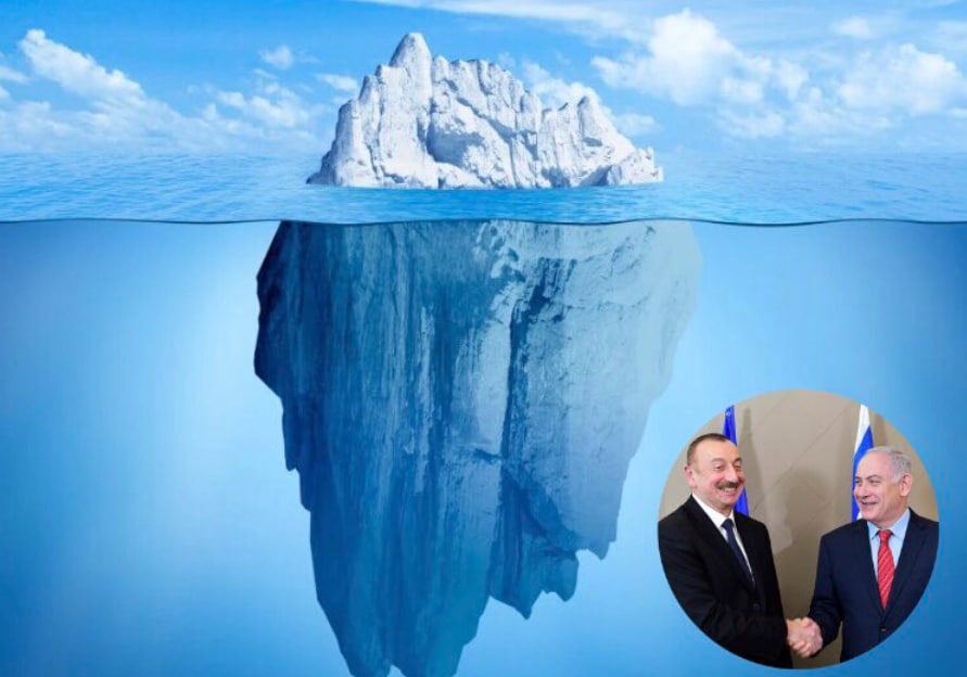 Часть документов, полученных в результате сложной операции иранской разведки, как утверждается, касается тайных связей Израиля с Азербайджаном. Об этом сообщил иранский аналитик Шуайб Бахман, директор исследований и старший научный сотрудник в области евразийских исследований и международной энергетической политики. В этой связи Шуайб Бахман напомнил слова президента Азербайджана Ильхама Алиева, сказанные им в мае 2008 года во время встречи с министром сельского хозяйства Израиля Шаломом Симхоном. Для наглядности Бахман опубликовал в X фотографию айсберга, на которой внизу изображены Алиев и Нетаньяху, а также приведена цитата Алиева на фарси: «Отношения Азербайджана и Израиля — как айсберг: девять десятых скрыто под водой». Эта характеристика двустороннего взаимодействия была раскрыта в утекшей американской дипломатической телеграмме, опубликованной порталом Wikileaks. Тогдашние израильские контакты сообщили дипломатам США, что Алиев именно так охарактеризовал союз с Израилем.