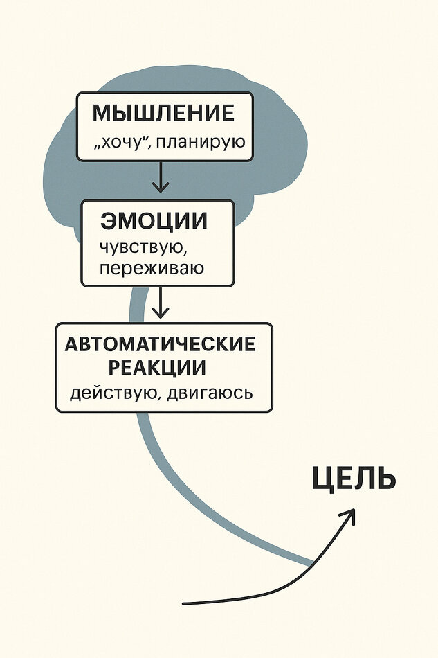 Почему мы можем годами хотеть чего-то - и не приходить туда? Потому что желание, которое не прожито через эмоции, остаётся только на уровне мысли. В этой статье - как устроен наш мозг, зачем проходить путь от цели к телу через чувство, и как с этим работает нейрографика. Метафора трёх дверей, практика, и новый способ приближать желаемое не усилием, а внутренним соединением. Почему мы можем хотеть чего-то годами - но не приходить туда? Не потому что лень. Не потому что не хватает силы воли. И даже не потому что «не верим в себя». А потому что настоящая трансформация начинается не в голове. Она начинается в теле и в эмоциях. А до туда добраться - не так просто. Наш мозг - не единый орган. Он устроен как три уровня: три системы, три языка. Каждая управляет своей частью нашей жизни. Первый - глубинный, так называемый рептильный мозг. Он отвечает за выживание, безопасность, базовые реакции. Именно здесь формируются привычки, автоматические паттерны, внутренние «стопы» и «да». Второй уровень