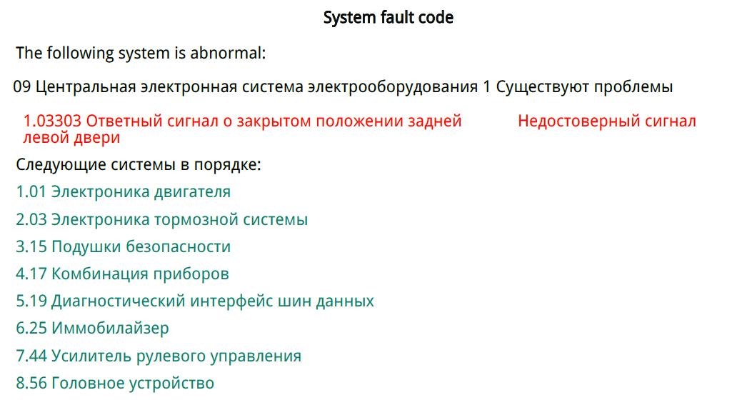 Ошибка системы электрооборудования: 03303 Ответный сигнал о закрытом положении задней левой двери.