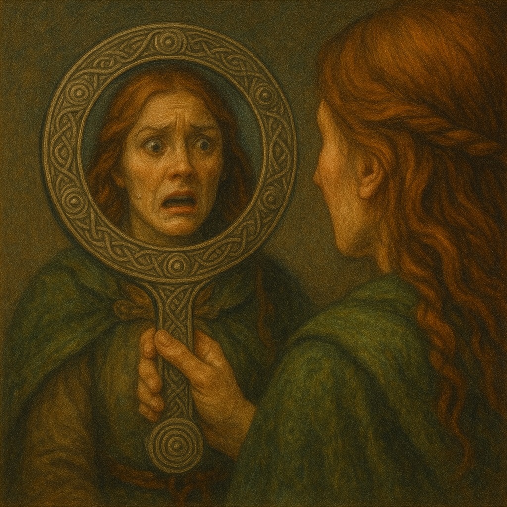 Древний ирландский «Лебор Габала Эренн» упоминает: встреча со своим отражением вне воды приводит к безумию. Двойник — это вор, крадущий твоё имя. Перестанешь быть собой, значит перестанешь быть частью клана. А кельт без клана — как виселица без верёвки.